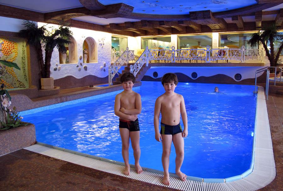 Onder: Vaste prik! Na het skien zwemmen we in de binnenbaden van het hotel.