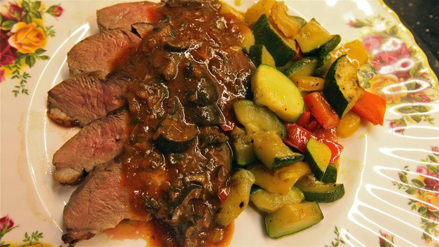 Onder: Het sluitstuk, gebraden “Belgische eenden” borst – met groenten en sausje waarvan ik de naam even niet meer weet, maar wat wel heel erg lekker was.