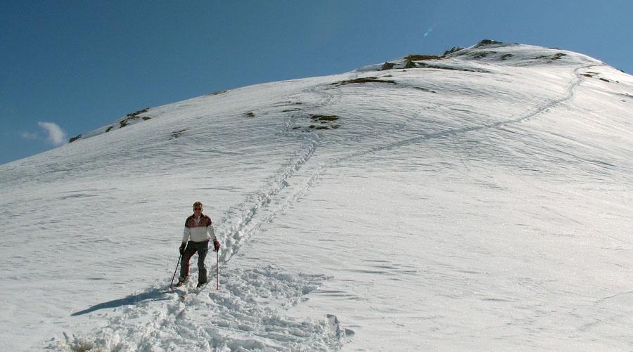 Onder: Deze piste op het lagere deel van de berg, voert door een bos.