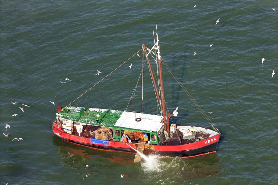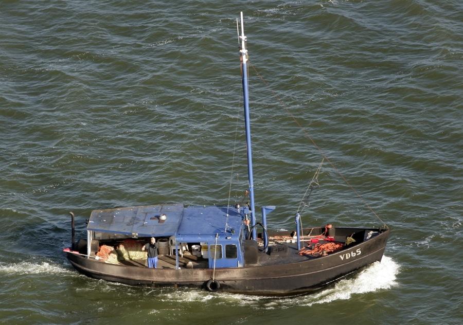 Onder: De VD 104 van visserman “Toppie” die we in 2005 na uren over het IJsselmeer vliegen pas vonden in de buurt van de afsluitdijk. Hij vist nog steeds onder dezelfde naam op paling.