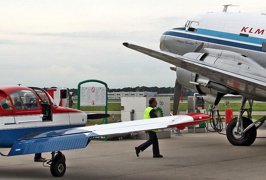 Onder: Afgelopen middag op Lelystad Airport stond ik tijdens het tanken met de PH-BZN naast de beroemde PH-PBA. Eens het speeltje van Prins Bernhard.