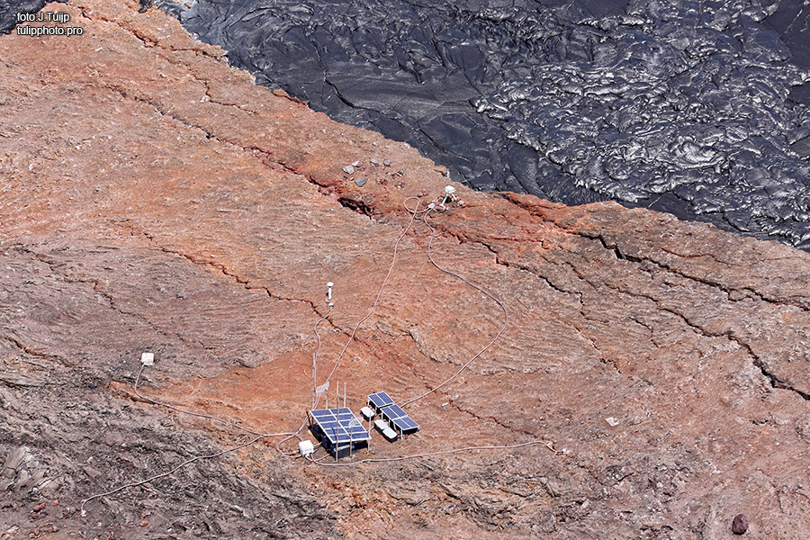 Nu al mijn favoriete lava foto, en deze hele plak zakt met een voor ons uit de helikopter zichtbare snelheid naar beneden, en laat zich door niets of niemand tegenhouden.