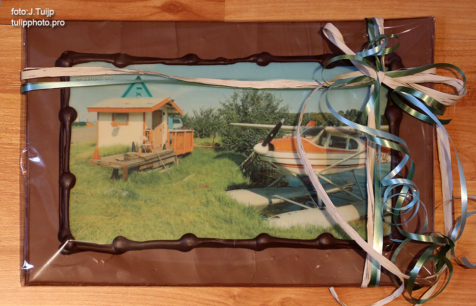 Omdat ik wel eens wat foto’s voor ze maak, kreeg ik deze week van de Stichting Volendamse Cultuur deze chocolade plaquette in ruim A4 formaat van Nico Brinkkemper cadeau. Ik zag pas na enkele minuten dat de foto die ook in de chocolade is ingebed, een foto is, die ik maakte in Alaska bij Lake Hood waar 900 watervliegtuigen in liggen geparkeerd. “De droom van elke vliegenier” had ik er bij vermeld, en die kreeg ik nu dus kado, in chocolade nog wel, een leuk gebaar, waar Nico’s zoon Kees en zijn vrouw Yoni veel van afweten