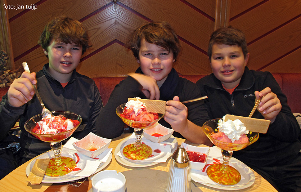 We hebben het zelden zo koud gehad als deze wintersport vakantie met onze kleinkids Jan Kees en Tim. Maar wat is dit leuk zo met die nazaten ! Hier lusten we wel pap van…