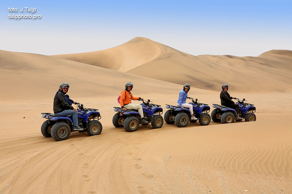 Omdat Namibië een Duitse kolonie is geweest zijn er nog veel Duitse invloeden merkbaar. Vooral in Swakopmund aan de Atlantische Oceaan waan je je in een Beiers stadje. Hier crosten we met Quad’s door het onmetelijke duin/woestijngebied, en zagen we een kolonie van 250.000 broedende en barende robben op een hoop.