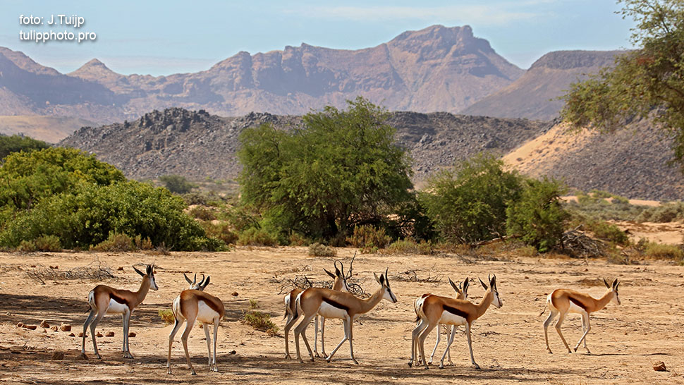 We vlogen via Johannesburg (11 uur vliegen) in ruim een uur naar de hoofdstad van Namibie, “Windhoek”, en haalden hier onze huurauto op, die 4 weken later in Botswana zou worden ingeleverd. Namibië is 20 keer zo groot als Nederland met een zeer afwisselend landschap en klimaat, veel wilde dieren en maar 2,8 miljoen mensen.
