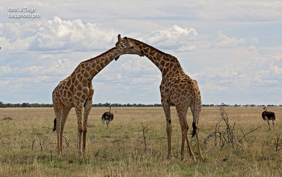 In Damaraland kwam de woestijn olifant op ons pad tijdens een van de vele game drives, en in de Sossusvlei beklommen we de oranjerode zandduinen waar Namibië zo beroemd om is. Ook maakten we hier s’ morgens vroeg een ballon vlucht over het sinistere ontwakende landschap. Naarmate je noordelijker komt wordt het landschap groener en natter. Zoals in het Etosha National Park waar vele olifanten, leeuwen, zebra’s krokodillen en nijlpaarden voor onze hardwerkende fotocamera’s verschenen. Via de Caprivi Strip – met veel dieren – in het noorden is de grenspassage naar Botswana de 1ste keer dat we met de Afrikaanse bureaucratie en stempelgekte te maken krijgen.