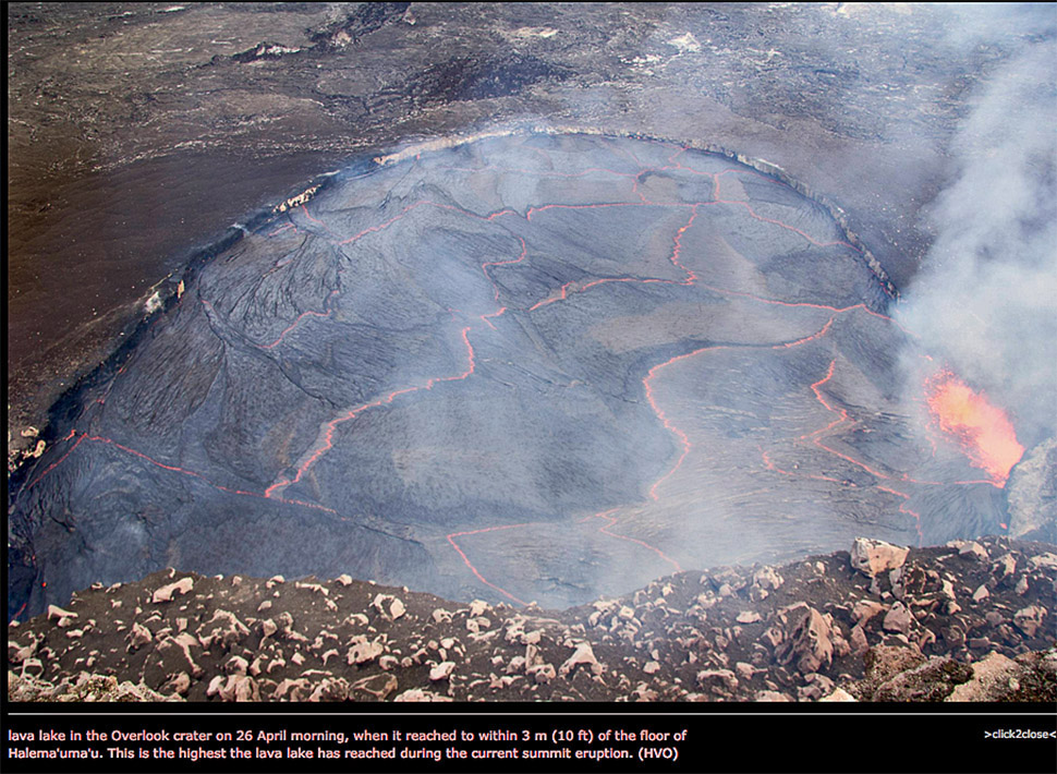 Vanmorgen zagen we op het TV journaal beelden van een lava explosie tijdens een al dagenlang durende vulkaan eruptie op Hawaii. We gingen even rechtop zitten toen we zagen dat het gaat om de vulkaan waarop wij afgelopen zomer drie nachten geslapen hebben in het Volcano House, op Big Island; ons bed stond eigenlijk pal naast deze krater die sinds 22 april actief is geworden en nu aan het overlopen is.